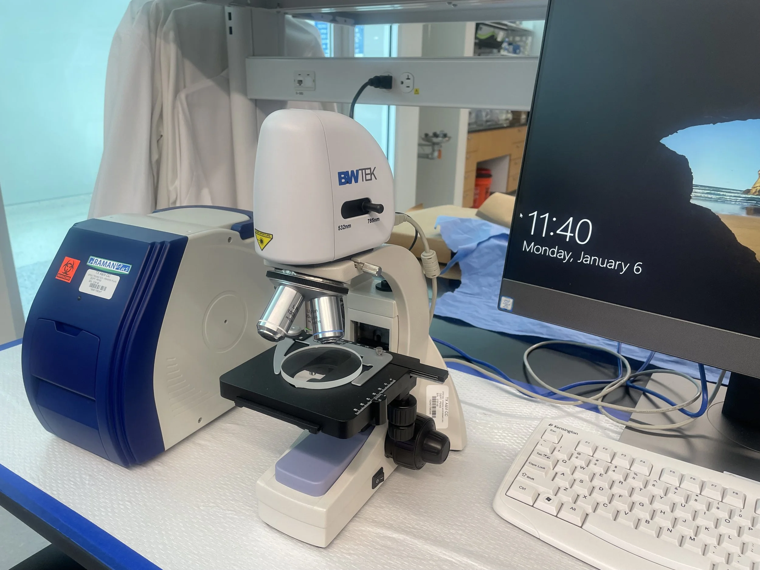 Raman - vibrational fingerprinting of biochemical compounds of interest and chemical characterization of new materials and nanostructures.